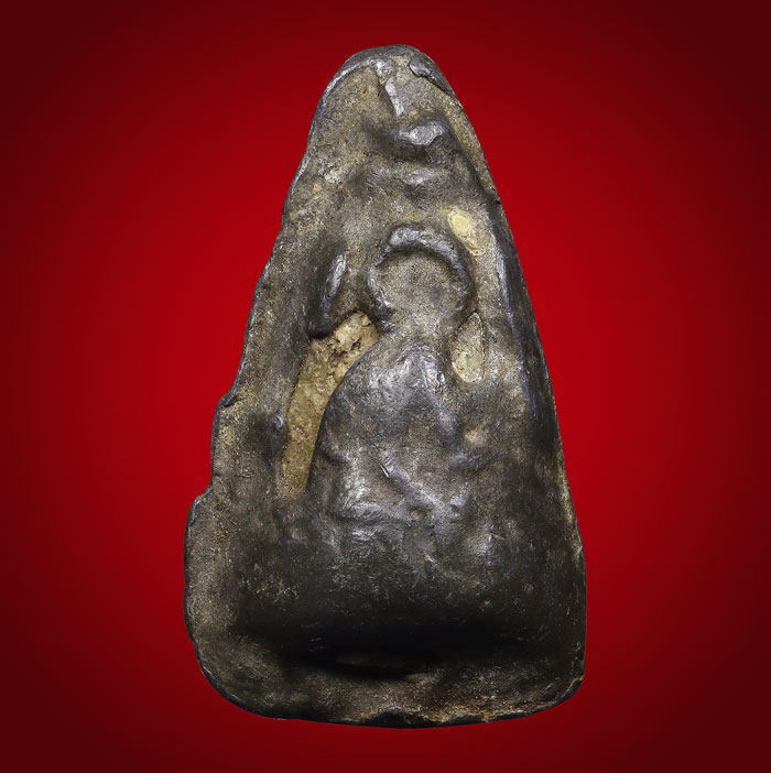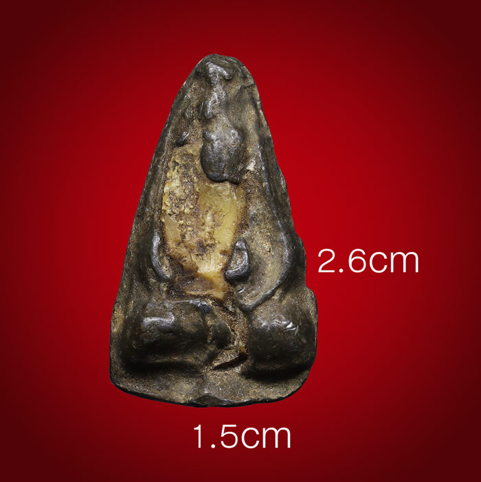(วัดใจเริ่มที่ 300)พระพุทธ เนื้อตะกั่ว ฝังเขี้ยวหมาป่าอาถรรธ์ หลวงพ่อดำ วัดกุฏี ปราจีนบุรี จัดสร้างราวปี พ.ศ.2402-2442 ขนาดองค์พระ ฐาน 1.5cm สูง 2.6 cm |