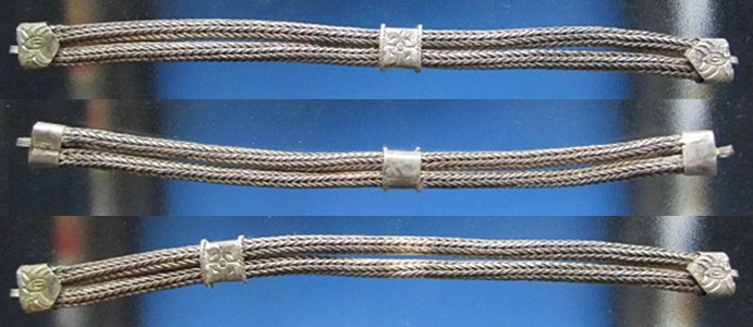 กำไลข้อมือโบราณเงินแท้ ห่วงครบไม่มีตะขอนะครับ นน.21.48 กรัม งานลายโบราณสวย ข้อตรงกลางสามารถเลื่อนไปมาดังรูปได้....... |