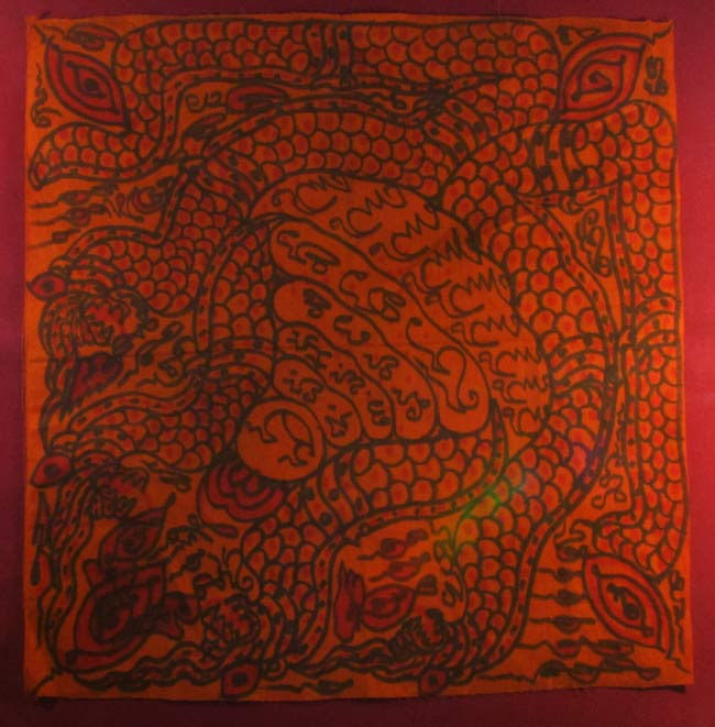 ผ้ายันต์ ไม่ทราบที่ จารยันต์ด้วยมือ เนื้อผ้าจีวร ครับ