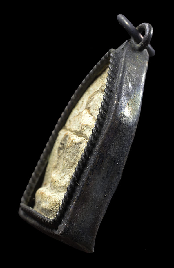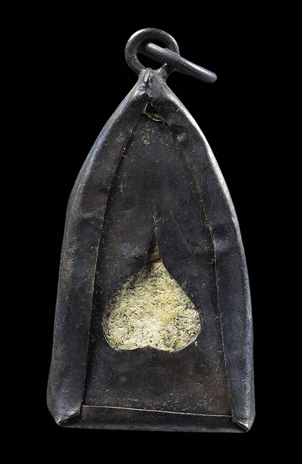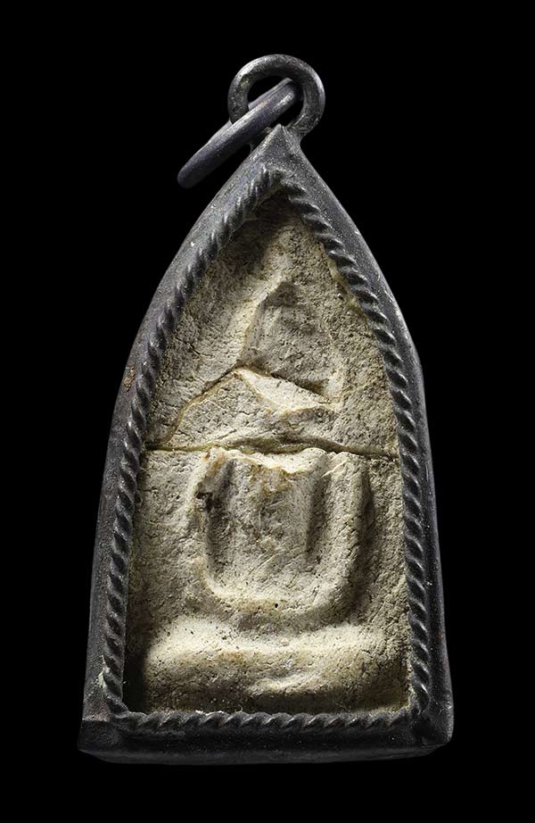 วัดใจเคาะเดียวแดง พระเนื้อผง พิมพ์สมาธิ เลี่ยมเงินโบราณ ชำรุด ไม่ทราบที่ |