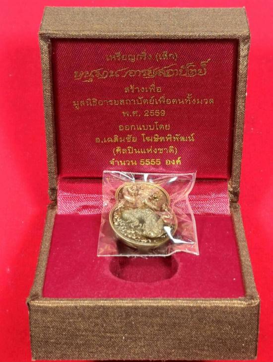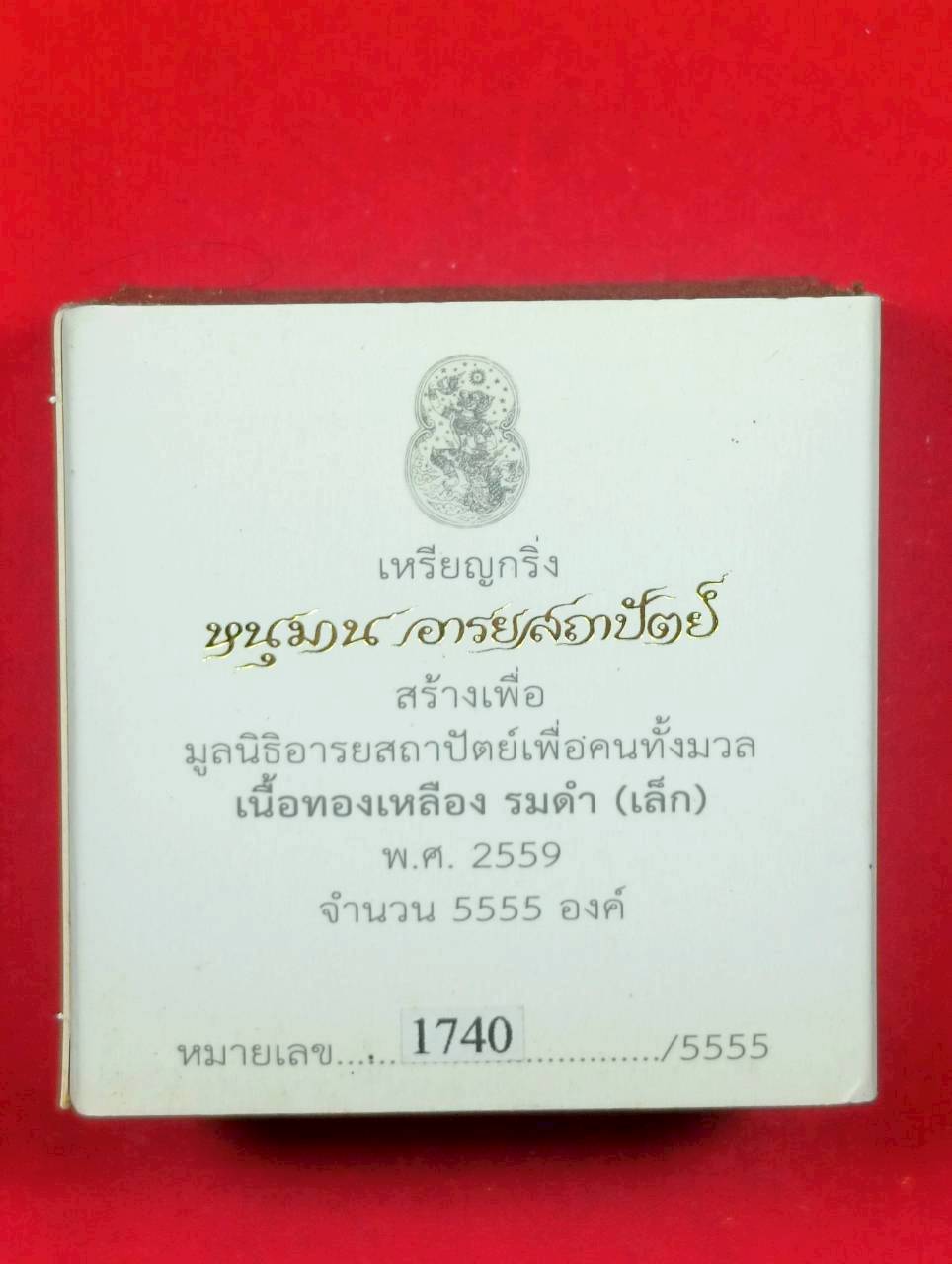 เหรียญกริ่งหนุมานอารยสถาปัตย์ เนื้อทองเหลืองรมดำ พิมพ์เล็ก ปี2559 หมายเลข 1740