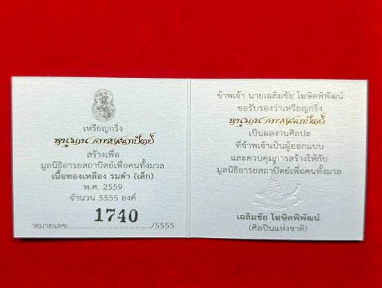 ใบ Cer มีหมายเลขตรงกับองค์พระ
