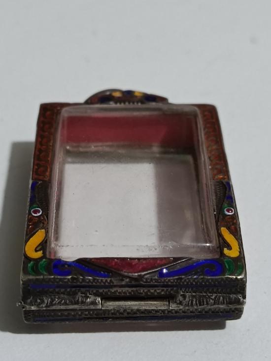 ตลับเงินแท้ลงยา เปิดหลังแกะลายลงยาร้อน หัวสิงห์ใหญ่ ใส่พระสมเด็จ.หนาหนัก 16.52 กรัม สนามใบละ1500 ขึ้นหมดแล้วครับ |