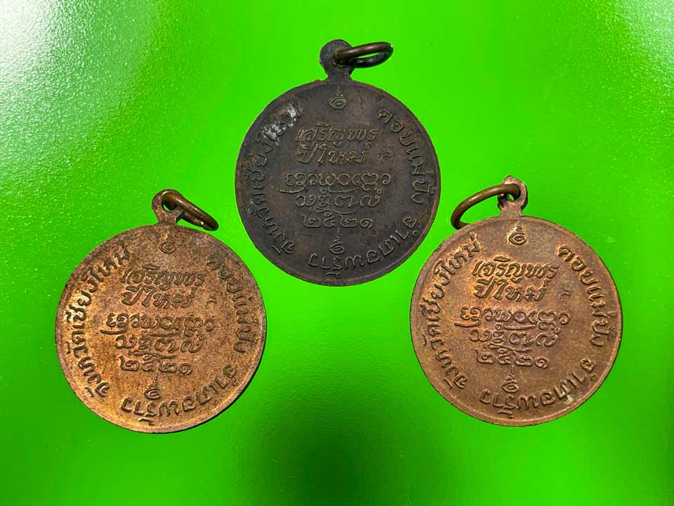 3องค์ เหรียญเจริญพรปีใหม่ หลวงปู่แหวน วัดดอยแม่ปั๋ง ปี2521 สวยเดิม