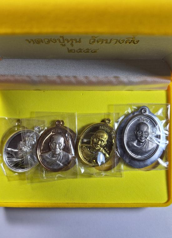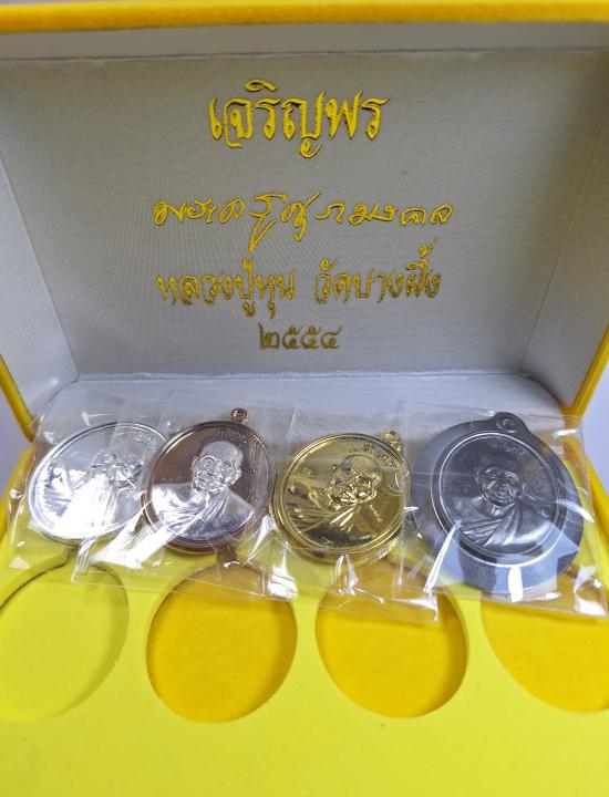เหรียญเจริญพร หลวงปู่หุน วัดบางผึ้ง จ.ฉะเชิงเทรา ชุดกรรมการ 4 องค์ กล่องเดิม ๆ |