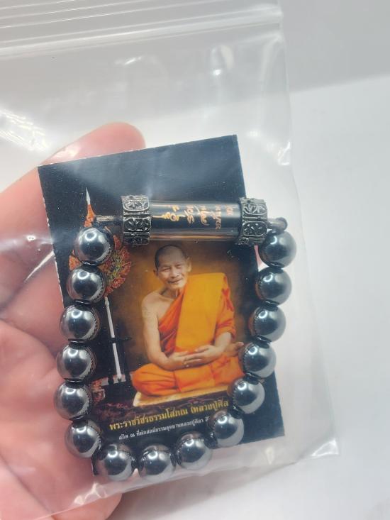 กำไล เหล็กไหล แผ่นตะกรุดรวยล้าน ( ขนาดเหล็กไหล15เม็ด) หลวงปู่มหาศิลา หลวงปู่ศิลา สิริจันโท ธรรมอุทยาน วัดพระธาตุหมื่นหิน จ.กาฬสินธุ์ รับประกันแท้ออกวัดร้อยเปอร์เซ็น |