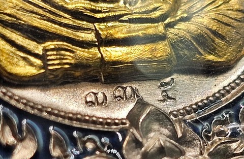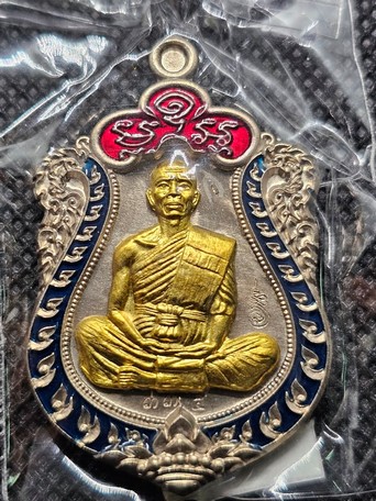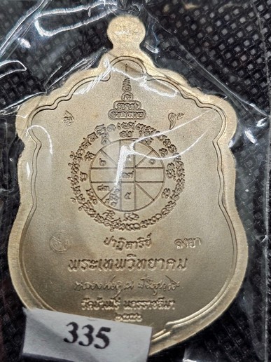 หลวงพ่อคูณ EOD เหรียญเสมา เนื้ออัลปาก้าหน้ากากปลอกลูกปืน ลงยา 2 สี แยกจากชุดทองคำ หมายเลข 335 จมูกโด่ง ซีลเดิม พร้อมกล่องเดิม