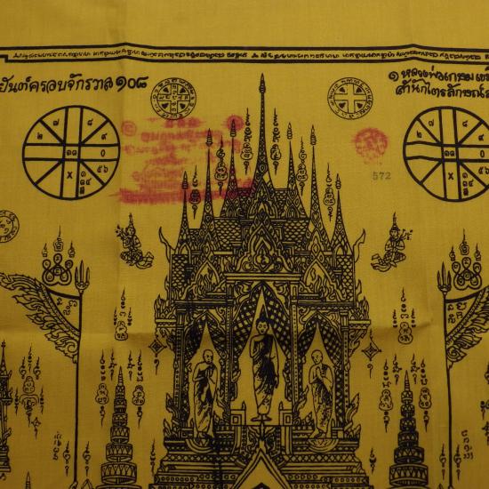 ผืนใหญ่..ขนาด19 X 29 นิ้ว... ผ้ายันต์ครอบจักรวาล 108 หลวงพ่อเกษม รุ่นพุทธคุณ ปี2538 เลข 572 ... (68.7.19 |