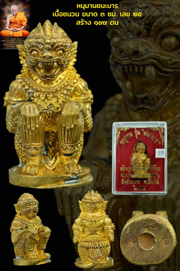 หนุมานชนะมารอุดผงพรายกุมาร ขนาด ๓ วม. สร้าง ๑๙๙ ตน หลวงปู่เขียว วัดห้วยเงาะ |