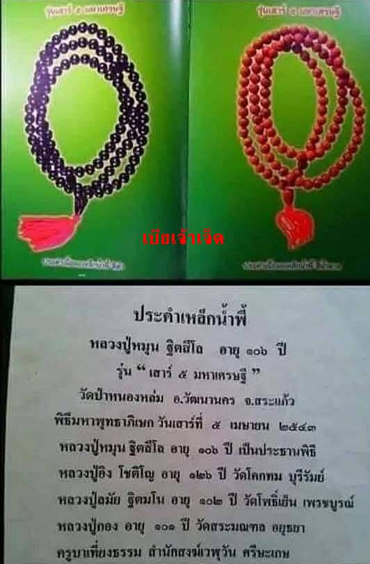 ประคำเล็ก 6 เม็ด เก็บไว้ในถุงซิป พิธีพุทธาภิเษกทั้งหมด 5 โดยหลวงปู่หมุน อธิษฐานปลุกเสกตั้งธาตุ หนุนธาตุ ชักยันต์ ครอบมณฑลพิธีอย่างตั้งใจผู้ใดได้ครอบครองมีไว้จักเป็นสิริมงคล พุทธคุณเหลือล้น เป็นเมตตามหานิยม ค้าขายดีมีโชคลาภ คงกระพัน แคล้วคลาด ช่วยปัดเป่าสิ่งอัปมงคล แล้วแต่จะอารธนาใช้ ของดีมีน้อย หายาก ติดบ้านติดรถติดตัวไว้ ดีนักแล แบ่งกันบูชา |