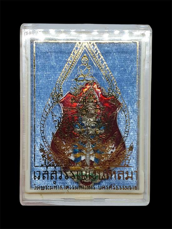 ..วัดใจ..เหรียญท้าวเวสสุวรรณ รุ่น เงินไหลมา เนื้อทองขาวซาติน ลงยาราชาวดี เลขสวย 508 วัดพระมหาธาตุวรมหาวิหาร จ.นครศรีธรรมราช |