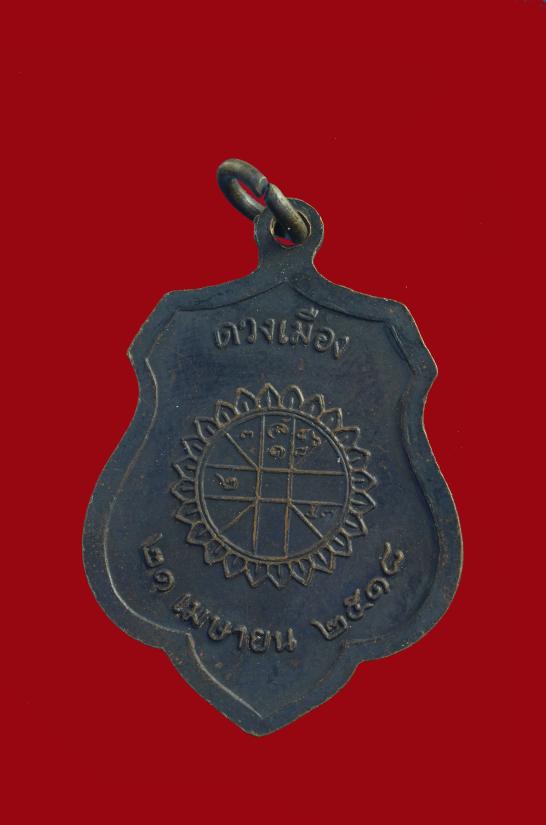 | 44-เหรียญศาลหลักเมือง หลังดวงเมือง กรุงเทพฯ กะไหล่ทอง ปี 2518 อ.ฝั้น , ลพ.เกษม , ลป.โต๊ะ , ลพ.เต๋ , ลพ.เนือง , ลพ.เส่งฯลฯ ร่วมปลุกเสก |