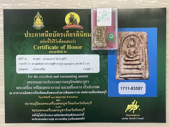 สร้างปี 2495 สภาพสวย พระมีกระเทาะ ติดกาวไว้แล้ว รับประกันพระแท้ ดูง่าย ใบประกาศรางวัลที่3 งานสมาคม