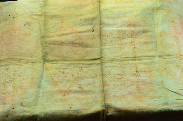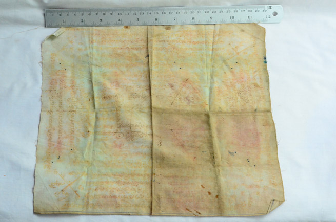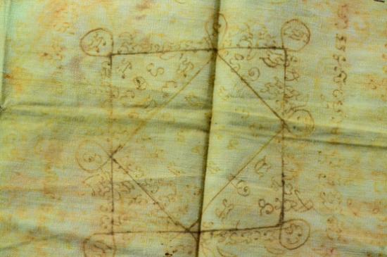 ผ้ายันต์ ค้าขาย เขียนมือ เก่าไม่ทราบที่ครับ |