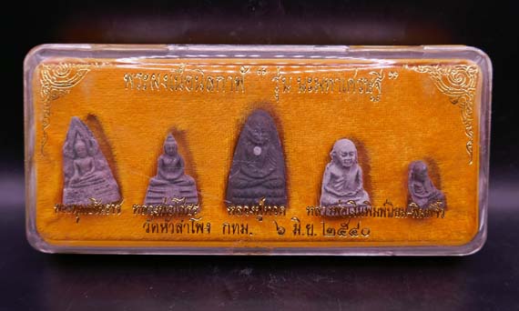 !!!!วัดใจ 9 บาท!!!! ชุด 5องค์ พระผงเนื้อนิลกาฬ รุ่นนะมหาเศรษฐี วัดหัวลำโพง ปี๒๕๔๐ กทม. พร้อมกล่องเดิม |