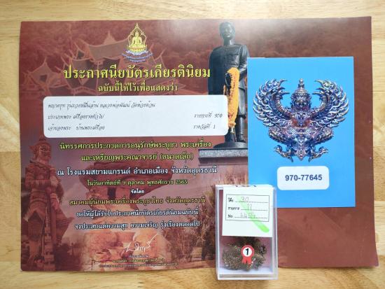 พญาครุฑ รุ่นรวยหมื่นล้าน หลวงพ่อพัฒน์ วัดห้วยด้วน พิมพ์ใหญ่เนื้อทองแดง สภาพสวย พร้อมติดรางวัลที่ 1 งานประกวดสมาคม |