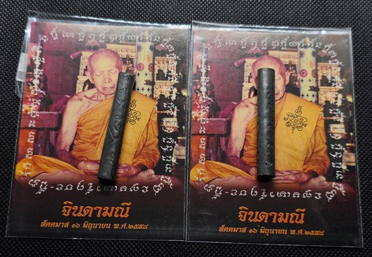 ตะกรุดยันต์ห้า มหาจินดามณี 2 ดอก อุดสีผึ้งพราย พิธีสัตตมาส ที่วัดละหารไร่ หลวงพ่อสินร่วมปลุกเสก พระเกจิเพียบ |