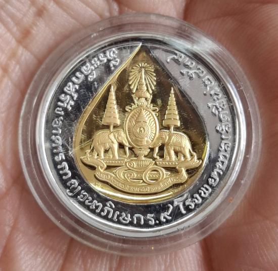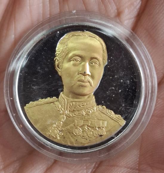 เหรียญร.5(คามิโอ)เนื้อเงินบริสุทธิ์999ขัดเงาอาบทองคำบางส่วน วาระสร้างอาคารกาญจนาภิเษกในหลวงร.9 รพ.เลิดสิน