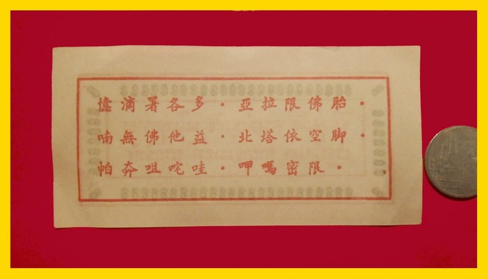 เก่าถึงยุค-นิยม หลังภาษาจีน-80-กระดาษยันต์กันภัย หลวงพ่อโอภาสี ด้านหลังภาษาจีน(หายาก ขนาด*9+5 ซม.*) |