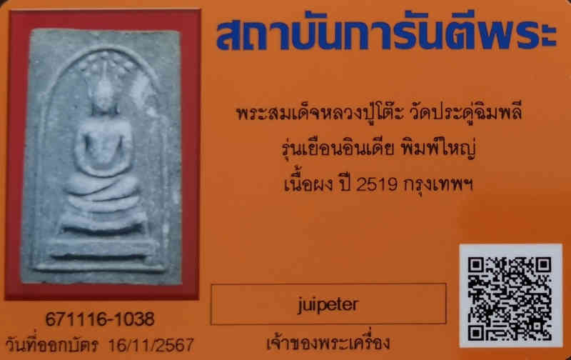 พระสมเด็จหลวงปู่โต๊ะ วัดประดู่ฉิมพลี รุ่นเยือนอินเดีย พิมพ์ใหญ่ เนื้อผง ปี 2519 สวยๆครับ |