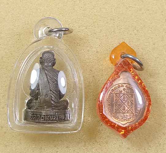 รูปหล่อพ่อเสาร์ วัดดอนหญ้านาง อยุธยา เลี่ยมกันน้ำ + เหรียญหลวงพ่อรวย วัดตะโก อยุธยา เลี่ยมกันน้ำ |
