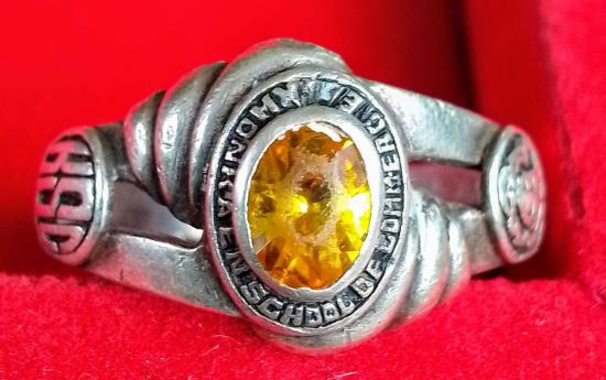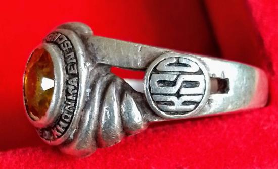 เคาะเดียวแดง..... แหวนเงินฝังพลอย khonkaen School of commerce ขนาดเส้นผ่านศูนย์กลาง 18 มิลลิเมตร โดยประมาณ |