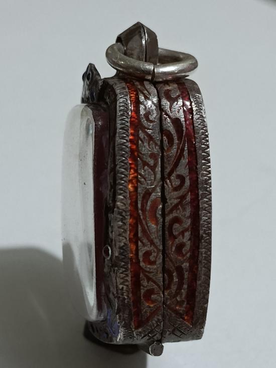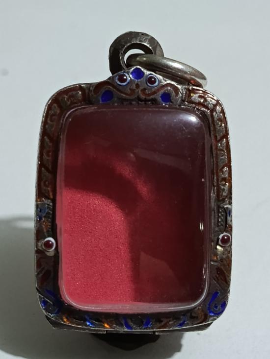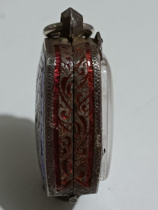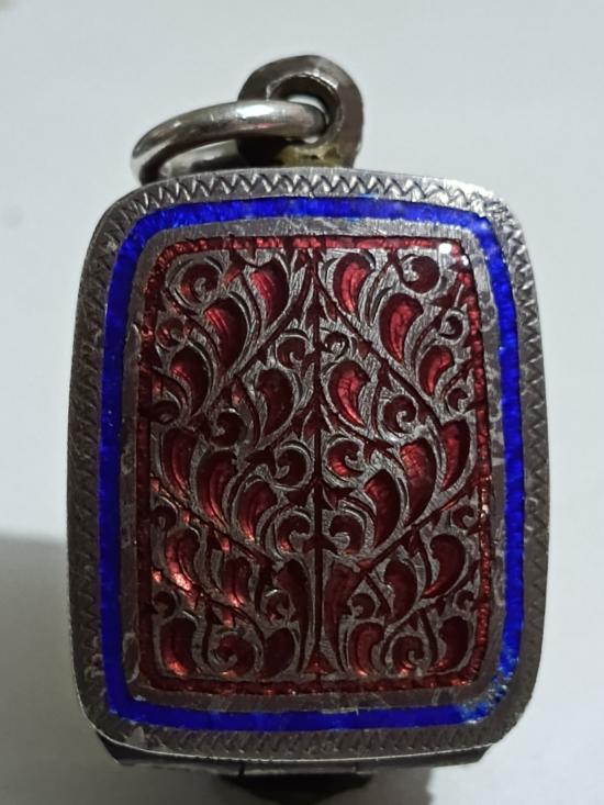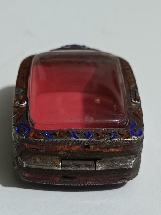 ตลับเงินเก่าแท้ ปิดหลังแกะลายกนกหัวสิงห์ใหญ่ ใส่ลพ.ปานขี่ไก่ หนาหนัก 12.20 กรัม งานแกะมือ