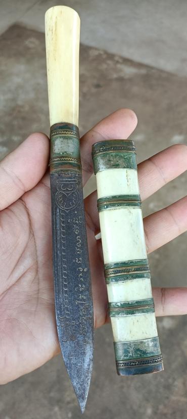 มีดหมอ หลวงพ่อจ้อย วัดศรีอุดมพร ด้ามเป็นกระดูก ใบมีดยาว 5 นิ้ว