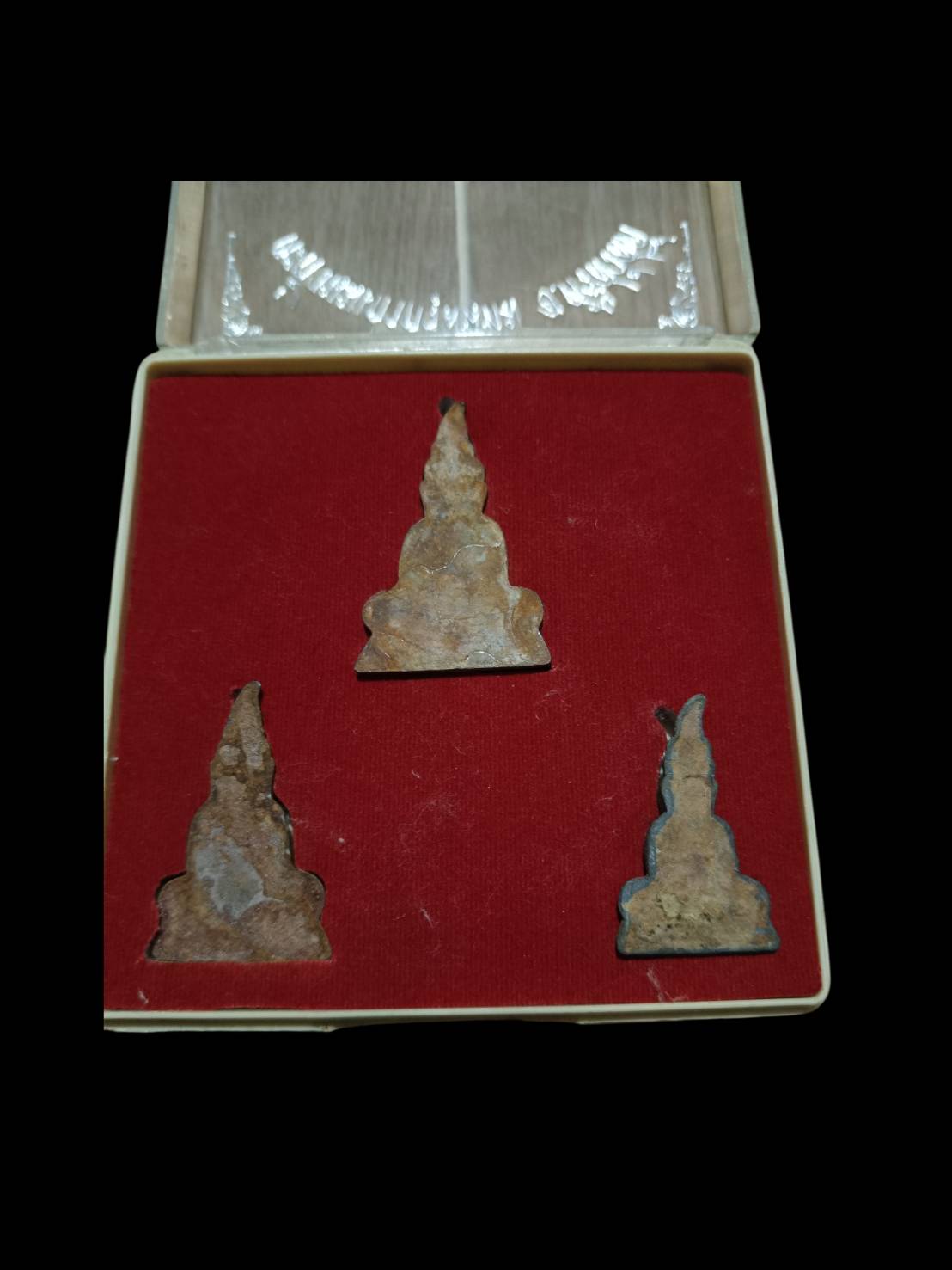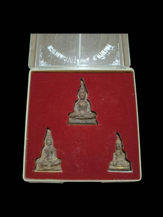 พระชุดท่ากระดาน วัดต้นลำใย เนื้อตะกั่วนมเก่ากรุลั่นทม อ.ศรี ส วัสดิ์ จ.กาญจนบุรี ครบชุดกล่องเดิมสภาพสวย |