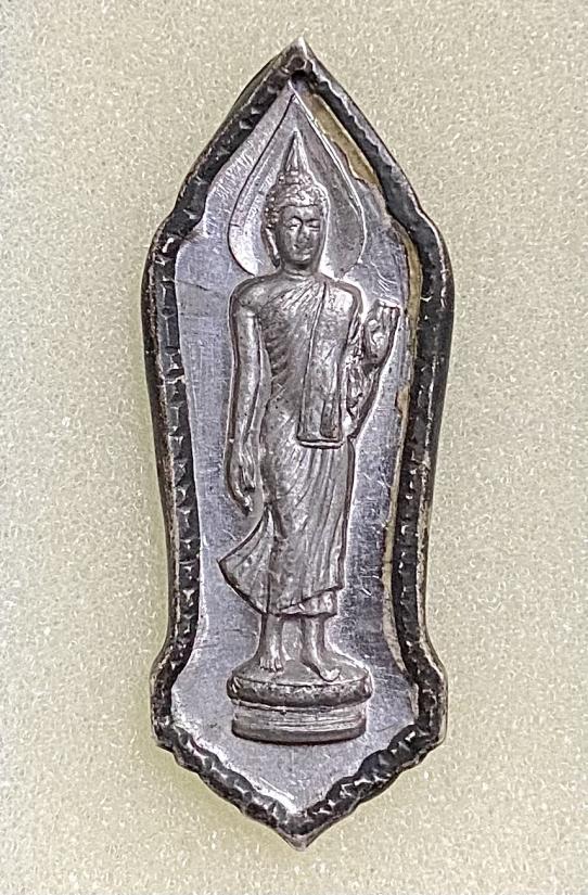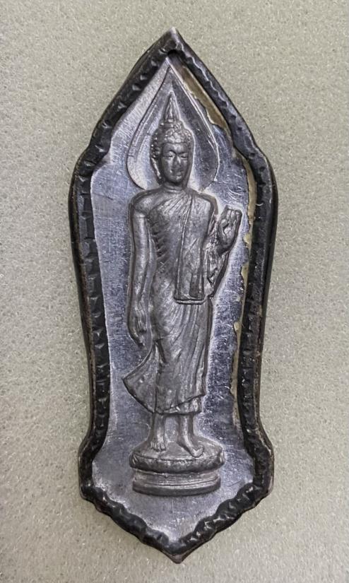 พระลีลา 25 พุทธศตวรรษ ปี 2500 เนื้อชินตะกั่ว จับขอบเงินโบราณ สภาพตามรูปเลยครับ