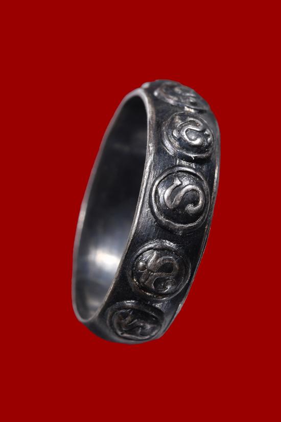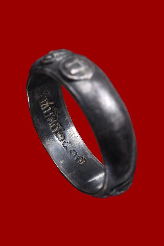 แหวนมงคลเก้า วัดราชบพิธ ปี 2513 เนื้อเงิน พร้อมบัตรรับรอง(ลป.โต๊ะ ลพ.มุ่ย อ.นำ ลพ.เงิน ลพ.แดง ลพ.มุม ลพ.เต๋ ปลุกเสก) ขนาด1.6 ซม. |