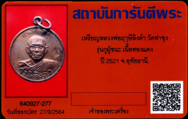 เหรียญหลวงพ่อฤาษีลิงดำ วัดท่าซุง รุ่นกูผู้ชนะ เนื้อทองแดง ปี2521 พร้อมบัตรรับรองG-pra เล่นหาได้อย่างสบายใจครับ |
