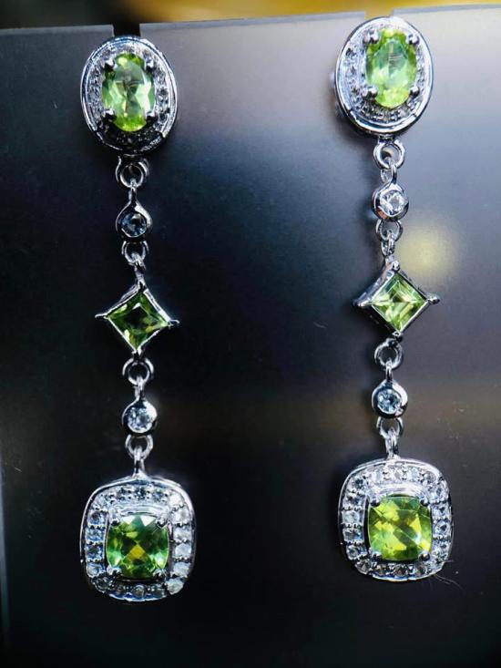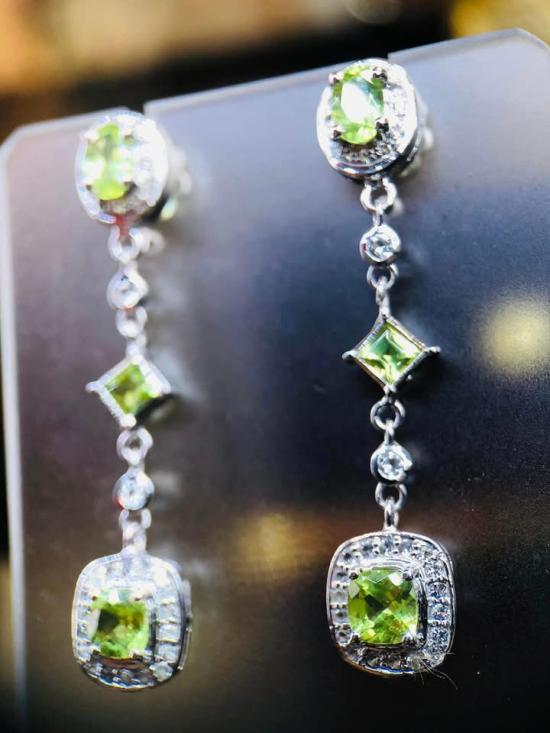 ต่างหูเงินแท้ 925 เต็มเปอร์เซ็นต์ ชุบทองคำขาว พลอยเพอริดอท พม่า เกรดส่งนอก |