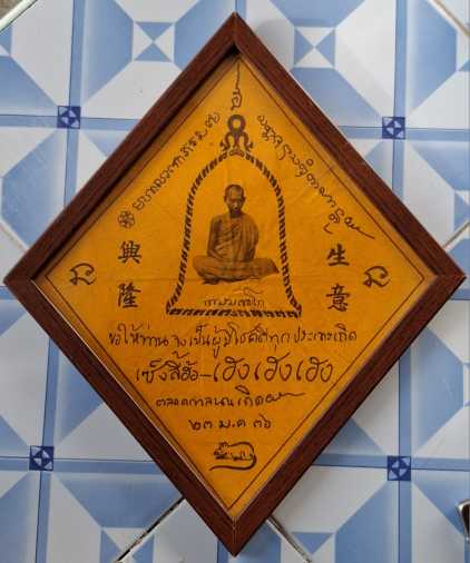 ผ้ายันต์เซ็งลี้ฮ้อ ปี ๒๕๓๖ หลวงพ่อเกษม เขมโก จ.ลำปาง พร้อมเลี่ยมกรอบ สามารถแขวนผนังได้เลยครับ |