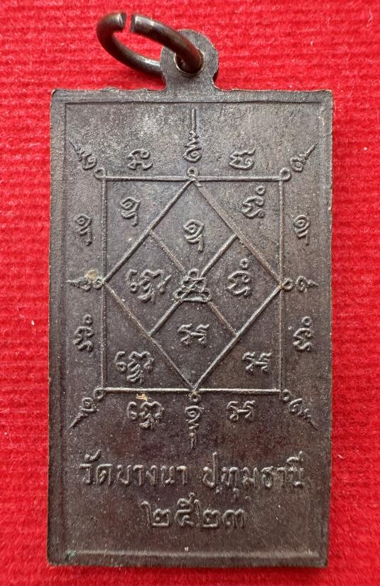 เหรียญสี่เหลี่ยม หลวงปู่เส็ง วัดบางนา จ.ปทุมธานี ปี พ.ศ.2523 เนื้อทองแดง