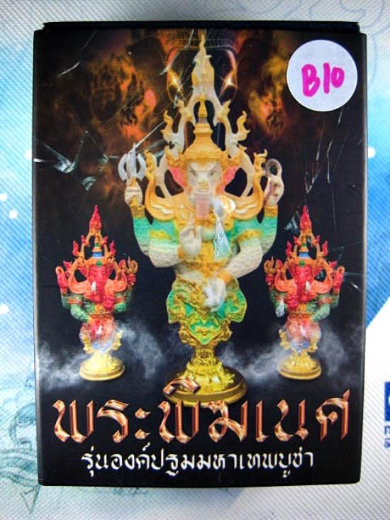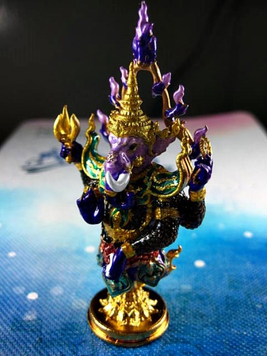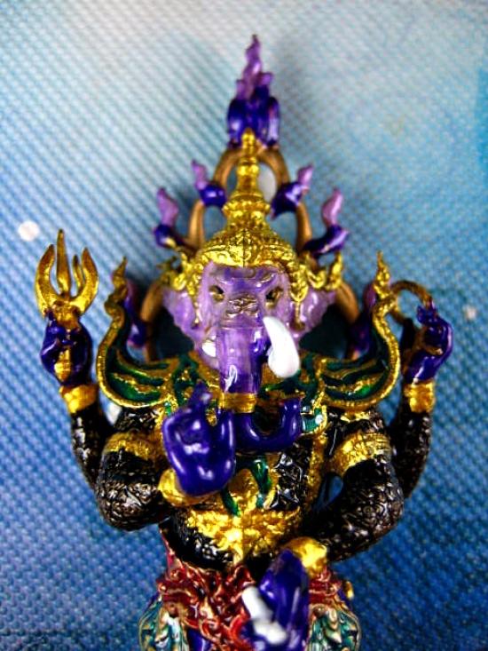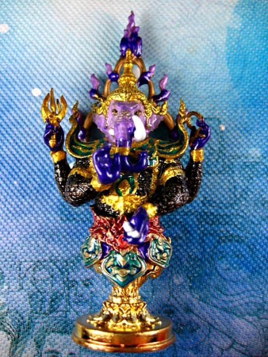 พระพิฆเนศ รุ่่นองค์ปฐมมหาเทพบูชา องค์ตั้งถอดประกอบ 2 ชิ้น เนื้อทองชนวน ลงยาม่วง ชนาดฐาน 1 นิ้ว สูง 2.5 นิ้ว สวยมาก งานพุทธศิลป์ จัดสร้างโดย พญาพรานซุ้มพญา (---B10---) |