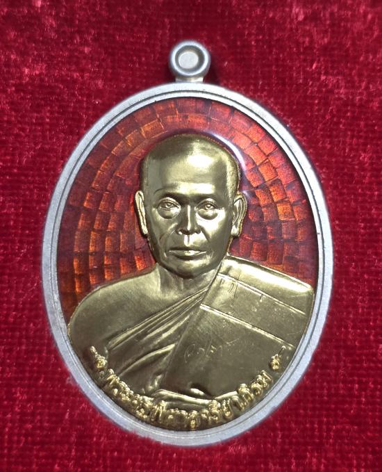 เหรียญฟาต้าไฉ พระมหาสุรศักดิ์ เนื้อเงินลงยาแดงหน้ากากทองคำ