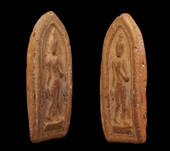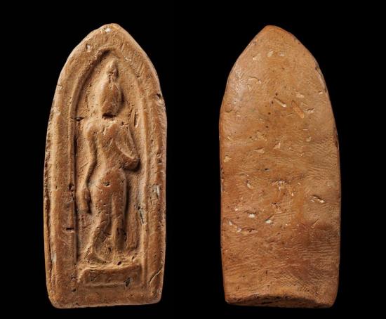 พระลีลากำแพงนิ้ว พิมพ์ใหญ่ เนื้อดิน หลวงพ่อโหน่ง วัดคลองมะดัน ปี 2461-2470 จ.สุพรรณบุรี