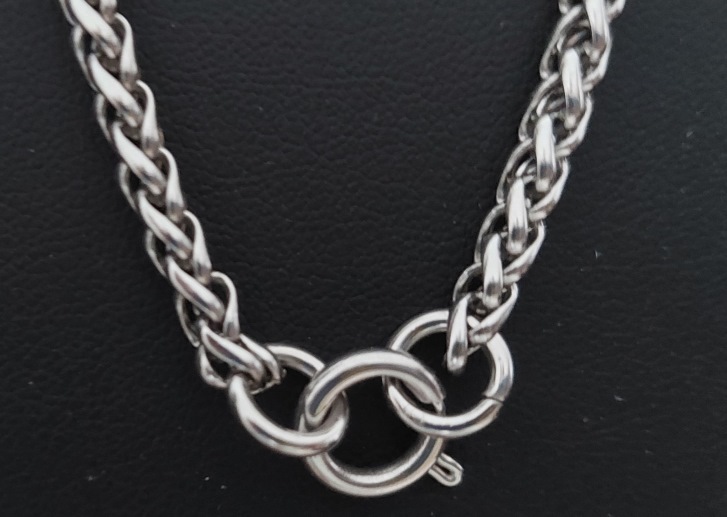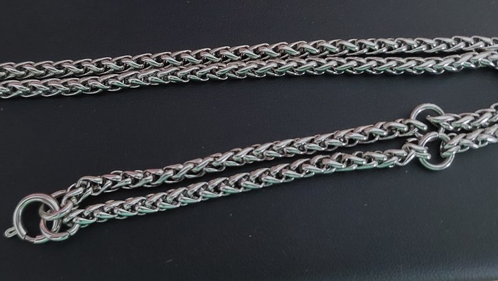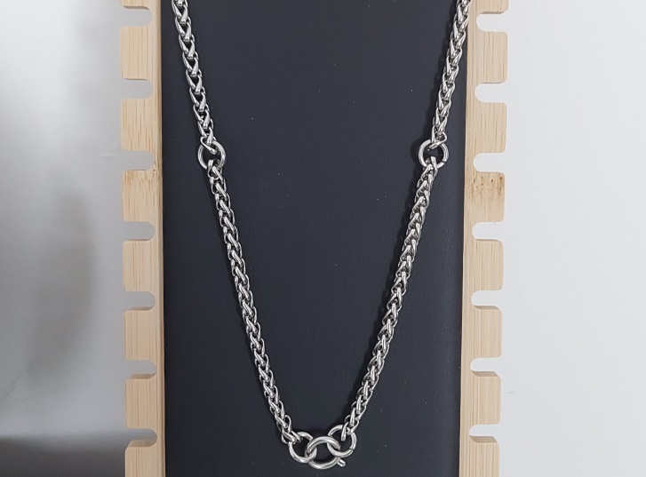 สร้อยสแตนเลสลายถักเปีย ยาว 26 นื้ว แขวนพระ3องค์ ห่วงกลางเป็นห่วงสแตนเลสสปริงเปลี่ยนพระง่าย สร้อยหนา 3.5 มม. |
