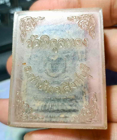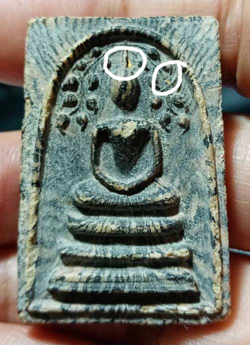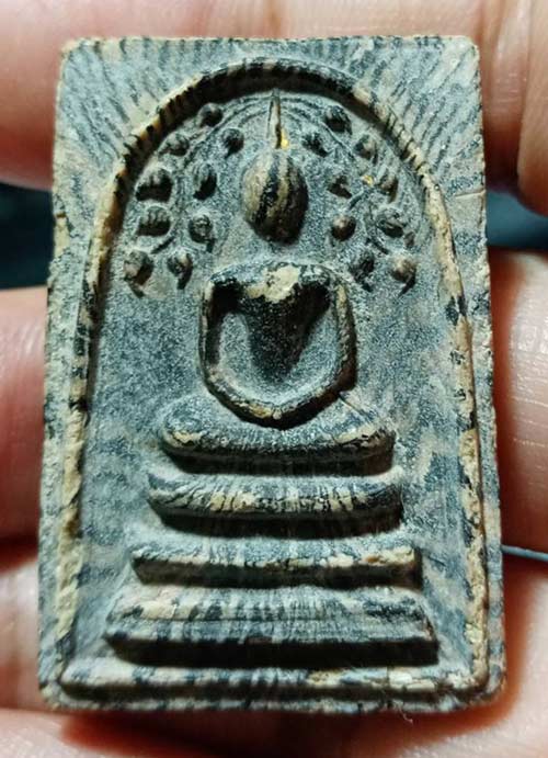 859.........วัดใจ........พระสมเด็จ หลวงพ่อแพ วัดพิกุลทอง จ.สิงห์บุรี ปี 2514 พิมพ์ปรกโพธิ์ เนื้อลาย มีชิ้นทองด้านหน้า .+กล่องเดิม |