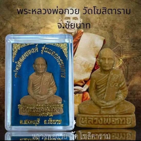รูปหล่อลอยองค์รุ่นแจกกรรมการ หลวงพ่อกวย วัดโฆสิตาราม ชัยนาท เนื้อผงน้ำมันสวยเดิมๆกล่องเดิม 100 แดงครับ |