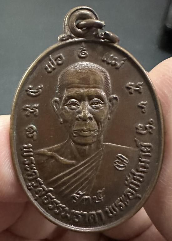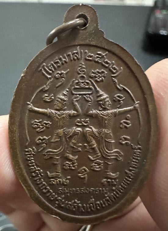 เหรียญไตรมาส หลวงพ่อรักษ์ วัดน้อยแสงจันทร์ หลัง พระลักษ์ พระราม ปี 2522 เนื้อทองแดง |