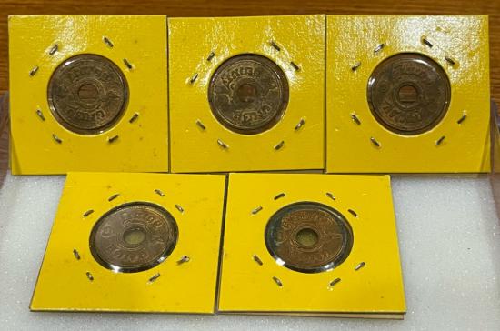 เหรียญ1สตางค์ ทองแดง5เหรียญ รศ127,130 ปี2461,2480,2482