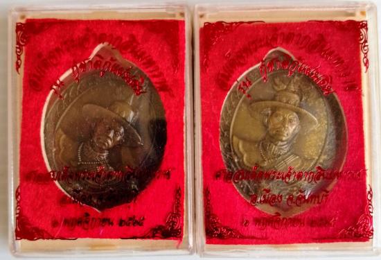 เหรียญสมเด็จพระเจ้าตากสินฯ หลังพญาครุฑ รุ่นกู้ชาติกู้แผ่นดิน ศาลสมเด็จพระเจ้าตากสินมหาราช จังหวัดจันทบุรี ปี 65 จำนวน 2 เหรียญพร้อมกล่องเดิม สภาพสวย |