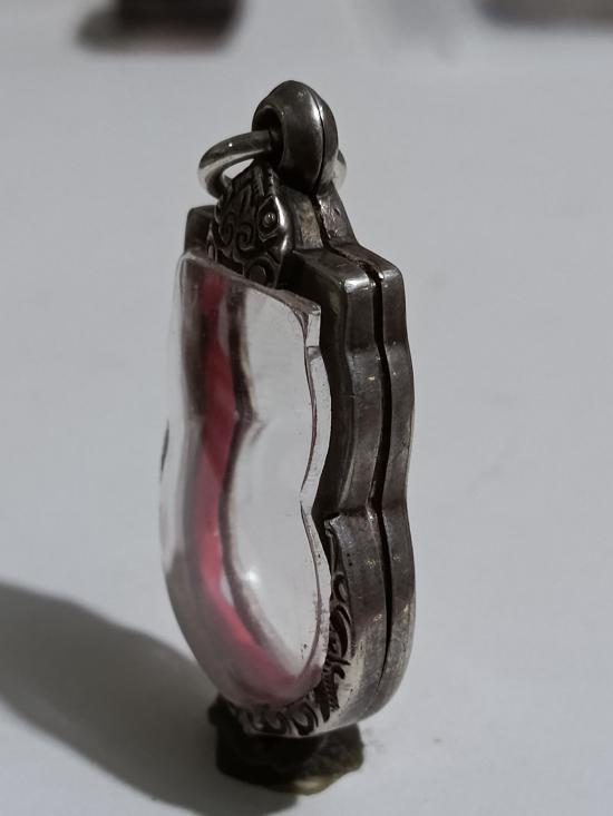 ตลับเงินเก่าแท้ เปิดหลัง หัวสิงห์ใหญ่ ใส่เหรียญเสมา แบบมุด หนาหนัก 7.71 กรัม |
