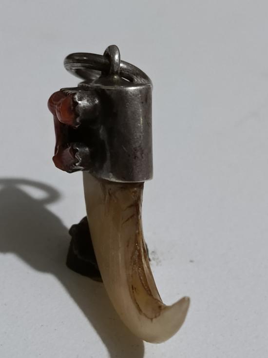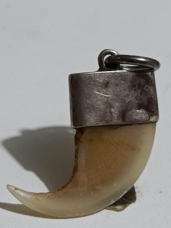 เล็บเสือของทนสิทธิ์ [ เลี่ยมเงินเก่าฝังคล้อย ] เล็บเสือเหนี่ยวทรัพย์ สุดยอดเครื่องรางของทนสิทธิ์ในตัว |