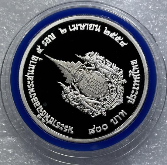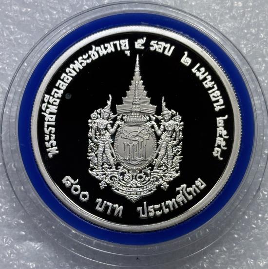 เหรียญเงิน 800 บาท ที่ระลึก พระราชพิธีฉลองพระชนมายุ 5 รอบ พร้อมกล่อง สภาพสวยตามรูป