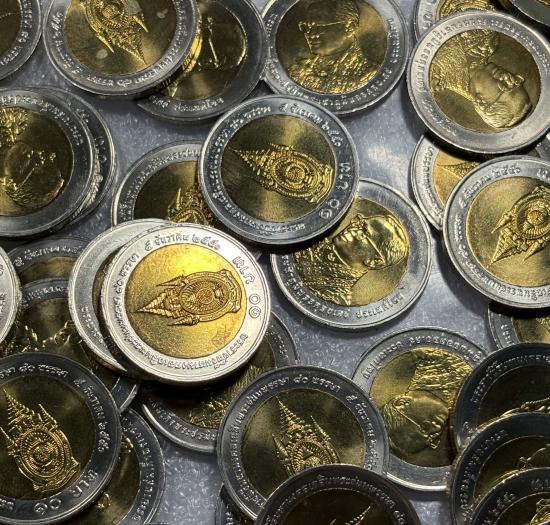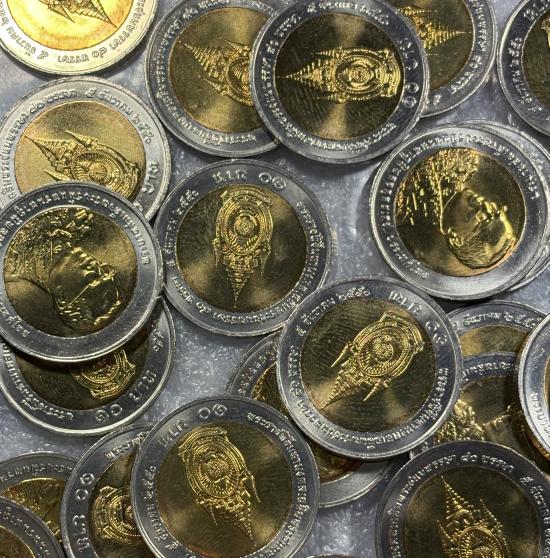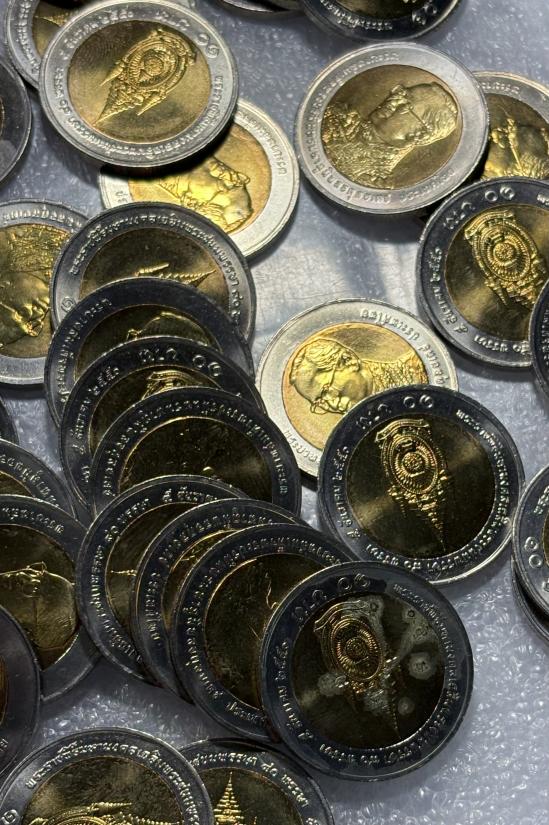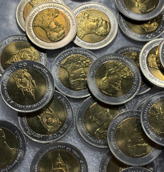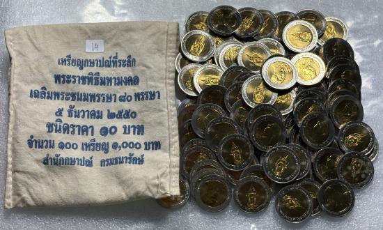 เหรียญ 10 บาท รัชกาลที่9 ที่ระลึกพระราชพิธีมหามงคลเฉลิมพระชนมพรรษา 80 พรรษา จำนวน 100 เหรียญ พร้อมถุง สภาพสวยตามรูป