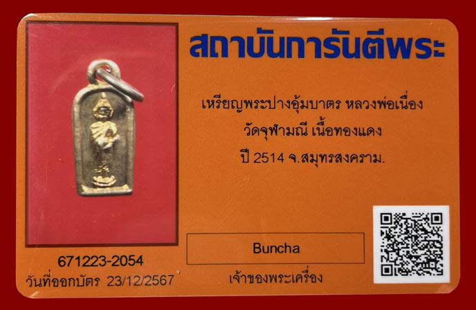 !!!...วัดใจ...เหรียญพระประจำวัน พิมพ์พระปางอุ้มบาตร(วันพุธ) ปี2514 หลวงพ่อเนื่อง วัดจุฬามณีฯ จ.สมุทรสงคราม เนื้อทองแดงผิวไฟ หายาก สภาพสวย พร้อมบัตรรับรองครับ...!!! |