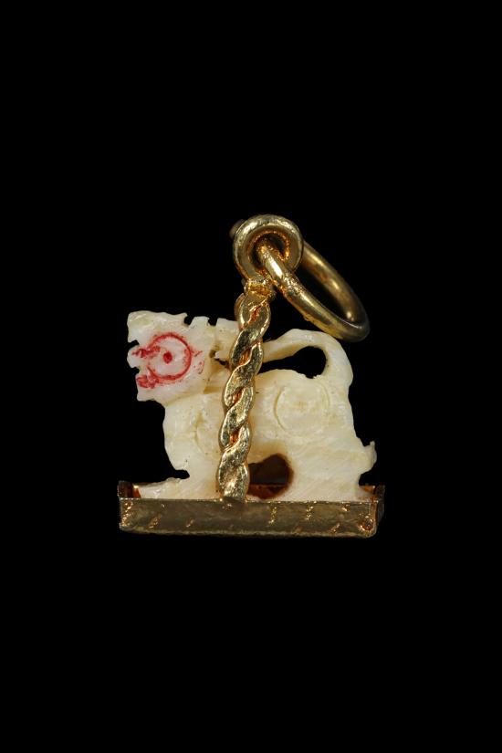 สิงห์สาริกา เลี่ยมกระเช้า หลวงพ่อหอม วัดชากหมาก ขนาดประมาณ 1 ซม |